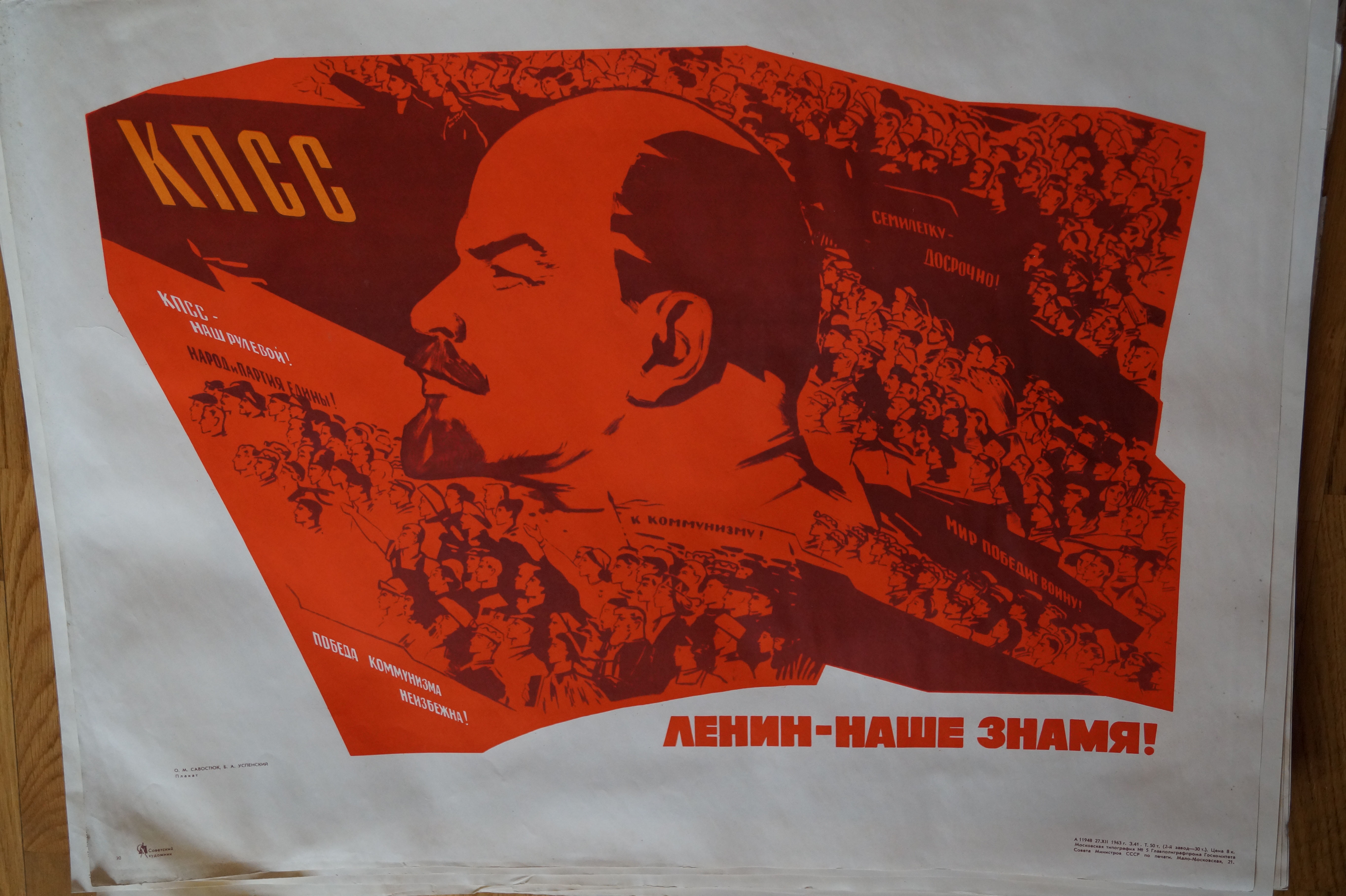 Продаю 64 плаката серии В.И, Ленин в изобразительном искусстве. Издание 1963 года (на каждом плакате есть дата печати). Издательство — Московская типография №5. Все плакаты в разном состоянии, на фотографиях можно детально рассмотреть каждый. Встречаются повторяющиеся плакаты, т.к. фактически — это два одинаковых набора, для каждого есть отдельная оригинальная папка. Продаю одним лотом.